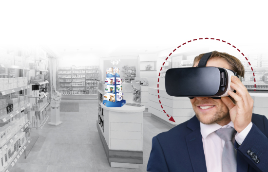 Digitale Medien eröffnen den Herstellern neue Möglichkeiten, die Apotheken für ihre Produkte und Aktionen zu begeistern. Virtual Reality lässt den Fachkreis Nutzen und Vorteile ihrer Angebote „erleben“ – mit einer App auf dem Smartphone in Verbindung mit einer VR-Brille. 3D- und 360°-Ansichten zeigen die Elemente aus jedem Blickwinkel, der Benutzer kann durch Neigen des Kopfes oder Änderung der Blickrichtung interagieren. Über Präsentationszwecke hinaus ist der Einsatz der VR-Technologie ideal für Schulungen und die Verbreitung von Produktinformationen.