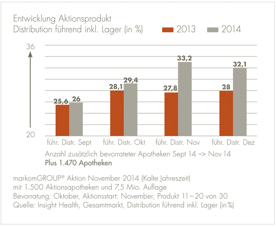 Beim Aktionsmonitoring arbeiten wir mit INSIGHT HEALTH und IMS. Zur Veröffentlichung freigegebene Fallbeispiele aus eigenen Abfragen bei den teilnehmenden Apotheken oder Aktionsmonitoring mit sichtbaren Ergebnissen in den OTC-Gesamtmarktzahlen präsentieren wir gerne auf Anfrage.